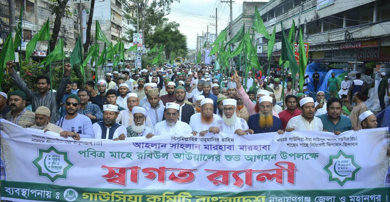 নিজস্ব সংবাদদাতা: নারায়ণগঞ্জ জেলায় পবিত্র মাহে রবিউল আউয়াল শুভ আগমন উপলক্ষে জশনে জুলুসে ঈদ-এ মিলাদুন্নবী (সাল্লাল্লাহু আলাইহি ওয়া সাল্লাম) কে স্বাগত জানিয়ে বর্ণাঢ্য র্যালীর আয়োজন করেছে বাংলাদেশ গাউছিয়া কমিটি নারায়ণগঞ্জ জেলা ও মহানগর।