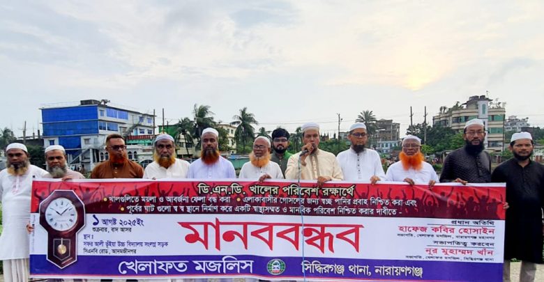 ডিএনডি খালের পরিবেশ রক্ষার্থে সিদ্ধিরগঞ্জে খেলাফত মজলিসের মানববন্ধন অনুষ্ঠিত