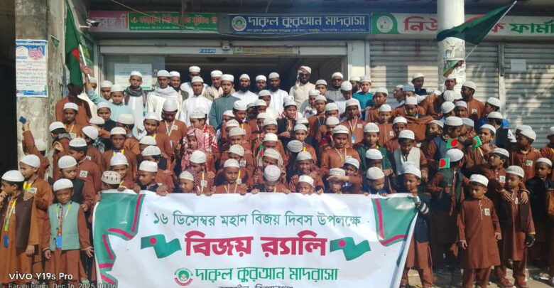 তাড়াইলে দারুল কুরআন মাদরাসার বিজয় র্যালি