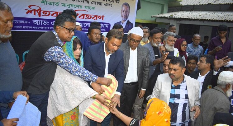 নিজস্ব সংবাদদাতা: বাংলাদেশ জাতীয়তাবাদী দল বিএনপি’র চেয়ারপার্সন, তিন বারের সাবেক প্রধানমন্ত্রী ও আপোষহীন দেশনেত্রী প্রয়াত বেগম খালেদা জিয়া’র রূহের মাগফেরাত কামনা করে নারায়ণগঞ্জ জেলা আইনজীবী সমিতির সাধারণ সম্পাদক ও সদর থানা বিএনপি’র সাধারণ সম্পাদক এড. এইচ. এম. আনোয়ার প্রধান’র উদ্যোগে দোয়া মাহফিল ও শীতার্ত মানুষদের মাঝে শীতবস্ত্র কম্বল বিতরণের আয়োজন করা হয়েছে।