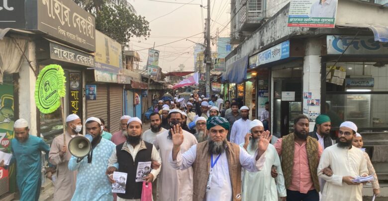 ইসলামী আন্দোলন বাংলাদেশ মনোনীত নারায়ণগঞ্জ-৫ আসনের সংসদ সদস্য প্রার্থী মুফতি মাসুম বিল্লাহ শুক্রবার (৬ ফেব্রুয়ারি) বন্দর ও নারায়ণগঞ্জ শহরের বিভিন্ন স্পটে গণসংযোগ করেন।