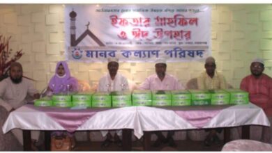 মানব কল্যাণ পরিষদের উদ্যোগে ইফতার মাহফিল ও ঈদ উপহার বিতরণ
