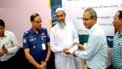 নারায়ণগঞ্জ নৌ পরিবহন টার্মিনাল নির্মাণ প্রকল্পে ক্ষতিগ্রস্তদের চেক হস্তান্তর
