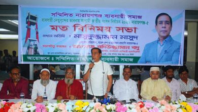 নিজস্ব সংবাদদাতা: সম্মিলিত নারায়ণগঞ্জ ব্যবসায়ী সমাজের উদ্যোগে “ব্যবসায়ী নেতৃবৃন্দের ভাবনায় আসন্ন জাতীয় সংসদ নির্বাচন নারায়ণগঞ্জ-৫” শীর্ষক মতবিনিময় সভার আয়োজন…