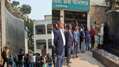 নারায়ণগঞ্জে ডিসি-এসপি কার্যালয়ের সামনে শেখ মুজিবের ম্যুরাল ভাঙচুর