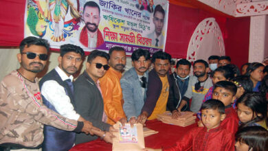 নারায়ণগঞ্জে সরস্বতী পূজায় শিক্ষার্থীরা পেলো জাকির খানের শিক্ষাসামগ্রী বিতরণ