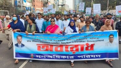 তফসিল বাতিল, সরকারের পদত্যাগ ও নিরপেক্ষ সরকারের অধীনে নির্বাচনের দাবিতে বিরোধী দলসমূহের ডাকা ৯ম দফা অবরোধের সমর্থনে বিক্ষোভ মিছিল ও…