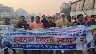 নারায়ণগঞ্জ ও সিদ্ধিরগঞ্জ প্রতিনিধি নারায়ণগঞ্জের হরতালের সমর্থমে সিদ্ধিরগঞ্জ থানা বিএনপির মিছিল থেকে সিটি করপোরেশনের ২ নং ওয়ার্ডের কাউন্সিলর ও সিদ্ধিরগঞ্জ…