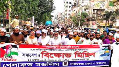 ফিলিস্তিনে ইসরাইলি বর্বরতার প্রতিবাদে নারায়ণগঞ্জে খেলাফত মজলিসে বিক্ষোভ
