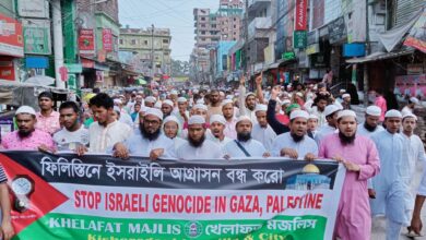 ফিলিস্তিনে ইসরাইলি আগ্রাসনের প্রতিবাদে কিশোরগঞ্জে খেলাফত মজলিসের বিক্ষোভ