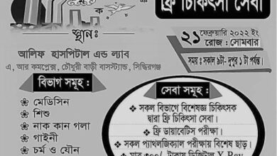 ২১ শে ফেব্রুয়ারি উপলক্ষে ফ্রি চিকিৎসা সেবা দিবে আলিফ হসপিটাল এন্ড ল্যাব
