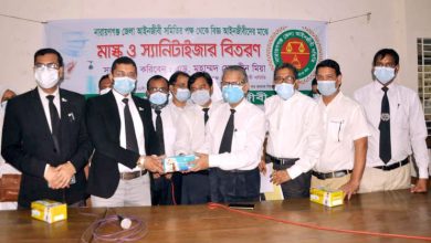না’গঞ্জে আইনজীবী সমিতির হ্যান্ড স্যানিটাইজার ও মাস্ক বিতরণ