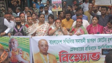 রাষ্ট্রদ্রোহী চিন্ময় কৃষ্ণ দাসের মুক্তির দাবিতে নারায়ণগঞ্জে বিক্ষোভ